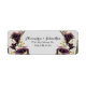 Auf dem Metallrahmen sind elegante, dunkelviolette und lila Calla Lilies-Aufkleber für Hochzeitsfeiern angebracht. Bearbeiten Sie den Text mit dem Bearbeitungswerkzeug nach Ihren Bedürfnissen. In unserer Calla Lilies Collection finden Sie eine komplette Hochzeitssuite.