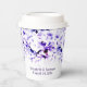Elegantes Violett-Design mit einem hübschen Bouquet mit Veilchen in voller Blüte. Die Namen der Braut und des Bräutigams sowie das Datum der Hochzeit werden unten angezeigt. Konzipiert, um sich mit der "eleganten Violetten katholischen Hochzeitssuite" abzustimmen.