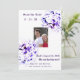 Im Design finden Sie das Foto von Paaren, umgeben von violetten Blume. Oben im Foto steht "Save the Date!", gefolgt vom Datum der Hochzeit in Zahlen. Unter Foto befindet sich der anpassbare Text, der das gleiche Datum wie ein ausgedrucktes anzeigt. Eine kurze Nachricht von Bride and Groom erscheint unten. Am unteren Ende der Stadt und Staat der Hochzeit wird angezeigt. Der gesamte Text ist in Old English Schriftart. Konzipiert, um sich mit der "eleganten Violetten katholischen Hochzeitssuite" abzustimmen.