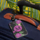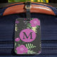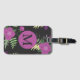 Elegante violette Blumen Kunst am Schwarzen Monogr Gepäckanhänger