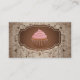 Zeigen Sie Ihre Art mit dieser eleganten Mokka-Damast-Kuchengeschäftskarte und zusammenpassenden Set, die reichen rosa und braunen Entwurf kennzeichnen. Entwerfen Sie Geschäft und persönliches Briefpapier- und Einladungs-Set. Brown- und Cremedamast versehen Musterhintergrund mit Leuchterartrahmen und dekadenten tan kleinen Kuchen mit hellrosa Zuckerglasur mit Federn. Vervollkommnen Sie zum Set die Stimmung für Konfektionsartikel.