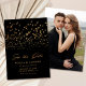 Diese wunderschöne Hochzeit Save the Date-Karte zeigt unzählige Vögel, die in Imitaten mit Goldfolie auf einem schwarzen Hintergrund zusammenströmen. Die Vögel eines Feather-Titels verdeutlichen, wie wichtig es ist, dass das Leben des Paares in die Ehe eingebunden wird. Auf der Rückseite befindet sich eine Fotovorlage. Elegant, elegant, modern und einzigartig!