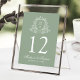 Bringen Sie Ihre Hochzeit mit einer raffinierten botanischen Touch mit diesen weise grünen Tischnummern-Karten, die ein weiches, blumengeschmücktes Wappen in der Monografie des Paares bilden. Die Tischnummer ist klar in der Mitte, mit Namen und Datum in eleganter weißer Kalligraphie unten, ideal für kluge grüne Hochzeiten, Empfänge im Garten oder naturlich inspiriert Themen. Diese Karte ist 5"x7" groß. Bearbeiten Sie jede Tischnummer individuell und fügen Sie sie Ihrem Warenkorb hinzu, um einen reibungslosen Bestellvorgang zu gewährleisten.