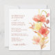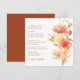 Eine schlichte und elegante Hochzeitseinladung mit einem Aquarellbrunnen aus Blume in Orange-, Gelb- und Rottönen mit dunklem Rosttypografie. Personalisieren Sie alle wichtigen Details wie Brautnamen und Bräuche, Hochzeitstag, Zeit und Ort. Die Rückseite ist in Rostterrakotta koordiniert.