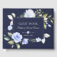 Elegante Watercolor Blue Flowers Frame Navy Hochze Gästebuch
