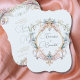 Eine opulente Vintage Notstandszeit themed wedding Probe Diner Einladung. Mit eleganten, gerahmten Wappen rund um Ihre Namen . Weich blau mit blauen lila Farbtönen und pastellfarbenen Farbtönen, die die Zeiten der Notlage widerspiegeln. Vintages und elegantes Hochzeitsdesign.