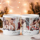 Feiern Sie Ihren Urlaub mit dieser personalisierten Weihnachtsfeier-Tasse mit den besonderen Momenten Ihrer Familie. Diese Tasse zeigt eine Collage von drei Fotos, elegant mit dem Text "Frohe Weihnachten" in einem kursiven Schriftart und Ihrem Familiennamen darunter arrangiert. Das Jahr "2024" fügt eine festliche Touch hinzu, die es zu einem perfekten Sake für Liebende macht. Ideal für gemütliche Morgens, festliche Ansammlungen oder als nachdenkliches Weihnachtsgeschenk.