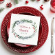 Diese herrliche Hochzeitsserviette bietet einen wunderschönen Aquarellkranz mit grünen Kiefernnadeln zu Weihnachten. Elegante Winterdekoration mit festlichen botanischen Blätter rund um Ihr Drehbuch. Personalisieren Sie die Namen der Paare in Rot im Kreis der Heiligen Beeren und Blätter.