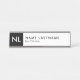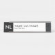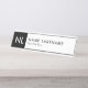 Passen Sie diese moderne, elegante, Minimalistische Monogram Desk Namplate an, mit schwarzem Namen, Nachname und Ihrem Titel auf weißem Hintergrund und mit weißem Monogramm auf schwarzem Hintergrund.