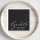 Elegante schwarze Graduiertenservietten mit "Graduate" in einem schicken weißen Drehbuch und den Namen und Klasse Jahr des Absolventen in der einfachen modernen weißen Typografie.