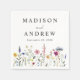 Elegante, blumengeschmückte Hochzeitsnapkins mit einem unteren Rand von Aquarellfarben und Blattwerk in Rosa, Gelb, lila, Blau und Grün auf weißem Hintergrund. Personalisieren Sie die Wildblume Servietten mit Ihren Namen und Hochzeitstag. Die personalisierten Servietten der Wildblume sind ideal für Paarduschen, Verlobungsfeiern, Proben- und Hochzeitsfeiern. Entworfen, um mit unserer Elegant Wildblume Meadow Hochzeitskollektion zu koordinieren.