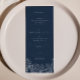 Elegante Wildblume marineblau 4x9" Blumenkarte Hochzeitstisch Menü Karte Flat Dinner Menü in moderner Skriptkalligraphie. Eine Auswahl von passenden Artikeln und 12x18 finden Sie in unserem Shop VelvetPaperCo.