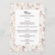 Dieses Wildblume Schmetterling Boho Hochzeitsmenü bietet einen weißen Hintergrund und eine schöne Auswahl an bunten Wildblumen und Schmetterlinge. Das Design ist böhmisch-inspiriert und strahlt ein skurriles und romantisches Ambiente aus.