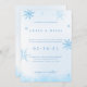 Set den Ton für Ihre zauberhafte Winterhochzeit mit dieser eleganten Schneeflocke in sanftem Eisblau. Dieses Design mit frostigen Schneeflocken und klassischer Serifentypografie eignet sich ideal für Hochzeiten in den Berghütten oder Winterfeiern. Leicht editierbar mit Ihren Daten.