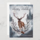 Elegante Winter Watercolor Weihnachtskarte. Das Design zeichnet sich durch graue Aquarellfarben Winterschneefall-Szene von Weihnachtsbäumen, Bergen, Reh mit Heiligbeeren aus. Elegante weiche Hintergrundtextur. Für weitere Anpassungen, kontaktieren Sie mich bitte unter kbasandra@gmail.com.
