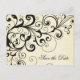 Diese Save the Date Hochzeitspost-Karte hat stilvolle schwarze Wirbel auf der Vorderseite mit "Save the Date" geschrieben. Auf der Rückseite sind ein paar Wirbel oben und unten finden Sie Ihre anpassbaren Informationen.