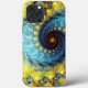 Moderne und elegante abstrakte Spiralfarbe Fraktal blau und gelb gürtelfarben mit dem Namen mit Monogramm personalisiert iphone 13 pro max Gehäuse