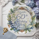 Ein atemberaubendes, im Garten inspiriert 60. Geburtstag-Partydesign mit einem aufwändigen, im Barockstil gestalteten Rundrahmen, der mit einer eleganten Mischung aus Blumenmotiven verziert ist. Der duskyblaue Rahmen ist anmutig in zarten Blume Lily of the Valley and Hawthorn eingezogen und schafft eine romantische und zeitlose Atmosphäre. Die faszinierende Detaillierung der barocken Elemente verleiht der Blume eine Touch von Grandeur, während die sanfte, natürliche Schönheit ein Gefühl der Ruhe und des Charmes vermittelt. Ideal für eine zauberhafte und raffinierte Feier.