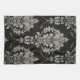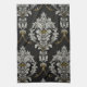 Ein luxuriöses und verziertes Damast-Muster mit aufwändigen Blumenmotiven in Weiß und Gold auf schwarzem Hintergrund. Das Design ist klassisch und raffiniert, ästhetisch, wie man es in Vintagen Tapeten, Textilien und hochwertigen Dekorationen findet.