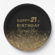 Geburtstagsparty Teller aus Schwarz und Gold. Atemberaubend vergoldeter Glitzer und goldener Geburtstagstext auf schwarzem Hintergrund. Einfach zu anpassen und auf jedes gewünschte Alter zu ändern.