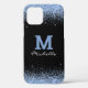 Eleganter Black Monogram Light Blue Glitzer Case-Mate iPhone Hülle