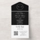 Schwarz-Weiß, elegant, rustikal, modern gefaltete Ehe, QR-Code Hochzeit alle in einer Einladung. Das dreifache, budgetäre Set. Sie können es mit Ihren eigenen Daten personalisiert.