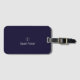 Modernes und stilvolles Gepäckanhänger mit mit Monogramm Anfangs- und Namensschild in weiß-goldener geometrischer Form, um auf einem dunkelblauen Hintergrund personalisiert zu sein.