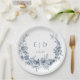 Eleganter blau eingeprägter Blumenreath mit Monogr Pappteller