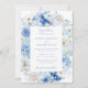 Diese Hochzeitseinladung enthält einen Aquarellrahmen mit eleganten Blume in verschiedenen Blautönen und handgeschriebenem Schriftart. Mit seiner ausgeklügelten Blume und Liebe zum Detail wird diese Einladung den Ton für eine unvergessliche und elegante Hochzeit Set geben.