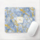 Eleganter Blue Marble Monogram Imitate Gold Glitze Mousepad
