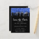 Eleganter Blue Silver Glitzer Tropfen Save the Dat Postkarte