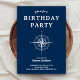 Eleganter Blue White Nautical Compass Geburtstag Einladung