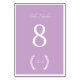 Lavendel und weiß minimalistisch elegante florale Monogramm klassische personalisierte Hochzeit Tischnummer. Dieses Produkt ist leicht zu bearbeiten. Wenn Sie Hilfe bei der Anpassung dieses Produkts benötigen oder mehr passende Produkte für diese Sammlung benötigen, senden Sie mir bitte eine Nachricht über Zazzle.