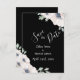 Schöner Mohn mit Grüntönen auf einem einfachen schwarzen Hintergrund Save the Date. So einfach und doch so elegant. Schön. Ich Liebe schwarz. Also schick. Modern für jede Zeit des Jahres Hochzeit.
