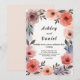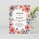 Diese elegante Wasserfarbenhochzeit lädt zu einer modernen Hochzeit ein. Das romantische Design zeichnet sich durch einen eleganten, floralen Aquarellrahmen mit schwarzer Kalligraphie auf weißem Hintergrund aus.