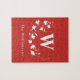 Dieses stilvolle Weihnachtspuzzle mit Ihrem Namen und Monogramm, sowie einem hübschen Blumenkranz in Rot und Weiß.