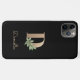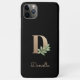 Das elegante schwarze Handy verfügt über ein goldenes botanisches Monogramm in der Mitte.