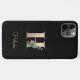 Das elegante schwarze Handy verfügt über ein goldenes botanisches Monogramm in der Mitte.