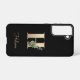 Das elegante schwarze Handy verfügt über ein goldenes botanisches Monogramm in der Mitte.