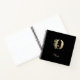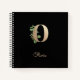 Elegantes schwarzes Notebook mit einem goldenen botanischen Monogramm in der Mitte.