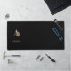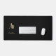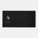 Die elegante schwarze Schreibtischmatte verfügt über ein goldenes botanisches Monogramm in der Mitte.