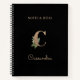 Elegantes schwarzes Notebook mit einem goldenen botanischen Monogramm in der Mitte.