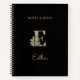 Elegantes schwarzes Notebook mit einem goldenen botanischen Monogramm in der Mitte.