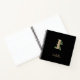 Elegantes schwarzes Notebook mit einem goldenen botanischen Monogramm in der Mitte.