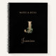 Elegantes schwarzes Notebook mit einem goldenen botanischen Monogramm in der Mitte.