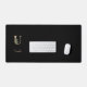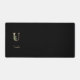 Die elegante schwarze Schreibtischmatte verfügt über ein goldenes botanisches Monogramm in der Mitte.