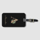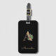 Eleganter schwarzer Gepäckanhänger mit einem goldenen botanischen Monogramm in der Mitte.