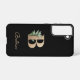 Das elegante schwarze Handy verfügt über ein goldenes botanisches Monogramm in der Mitte.