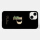 Das elegante schwarze Handy verfügt über ein goldenes botanisches Monogramm in der Mitte.