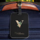 Eleganter schwarzer Gepäckanhänger mit einem goldenen botanischen Monogramm in der Mitte.